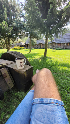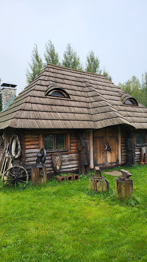 Read moreJeśli interesuje was miejsce do spędzenia czasu z dziećmi to szukajcie dalej. Po obiekcie oprowadzi was Pan właściciel i opowie wam ile osób się mieści w altankach grillowych oraz ile kosztuje nocleg. Jeśli liczycie na ciekawostki historyczne to nic ciekawego się nie dowiecie (chyba, że nie skończyliście podstawówki). Domki widoczne na zdjęciach są jedynie ciekawie stylizowane z zewnątrz. Pierwszy w środku daje możliwość zwiedzenia "kuźni".W kolejnym znajduje się WC, dwa środkowe to miejsca noclegowe i w ostatnim jest mini kuchnia. Na końcu placu mamy pochowane dwa psy, parę namiotów i ule. Z aktywnych atrakcji jest możliwość oddania strzału z łuku, a dla dzieci jedna zjeżdżalnia. Ogólnie opuszczając to miejsce czułem się dziwnie płacąc za wysłuchanie oferty wynajmu altanek na wieczory kawalerskie i domków do spania, to tak jakby pójść do hotelu i zapłacić Pani w recepcji za przedstawienie cennika. Jeśli ktoś szuka miejsca do imprezowania, to już bardziej może się pokusić o przyjazd. Jednak biorąc pod uwagę, że jesteśmy na posesji obok domu właściciela, który wydaje się być człowiek absobujacym to raczej prywatność wydaje mi się znikoma. Podsumowując czysto, nudno i napewno nie warto jechać...