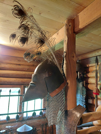 Sam teren fantastycznie zagospodarowany, wszędzie piękna trawka, po której ultra przyjemnością jest chodzenie na boso i napawanie się tym miejscem i ta ciszą. Można tu postrzelać z łuku oraz obejrzeć mnóstwo eksponatów broni białej, zbroi rycerskich i starodawnych przedmiotów. Jest nawet maszyna oblężnicza!