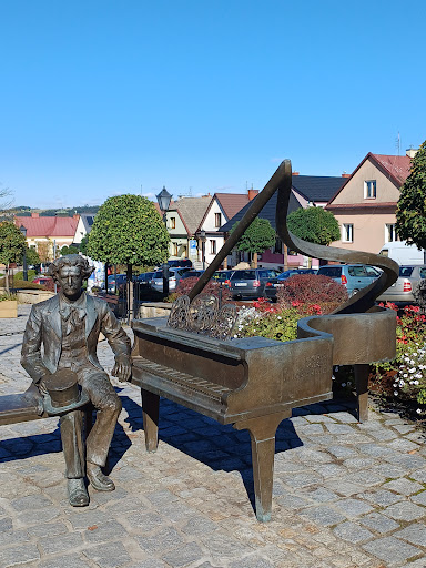 Cały rynek jest wybrukowany i zamieniony na parking zatem z miejscem dla auta problemu nie będzie. Centralnym punktem jest Stary ratusz, nie byłem wewnątrz ale z zewnątrz jest to bardzo ładny budynek, wart zobaczenia. Zabudowa wokół rynku jest dwojaka, z jednej strony stare ceglane budynki z drugiej rzucające się w oczy pomalowane na pstrokate kolory plomby. W porównaniu do rynku w Lanckoronie to prawdę mówiąc nie ma porównania bo Lanckorona zapada w pamięć a tutaj, byłem zobaczyłem, odjechałem. Chyba największa atrakcja jest grajacy pomnik Paderewskiego. Można przeznaczyć na zwiedzanie kilka minut ale tylko przejazdem bo nie warto uznawać tego miejsca za kuluminacyjny punkt programu. Może nie powinienem porównywać tego miejsca do Lanckorony ale to moja subiektywna ocena, zwyczajnie wolę zabudowę drewniana. Poza tym wokół rynku sa sklepiki i lody -...