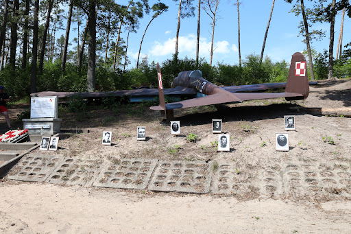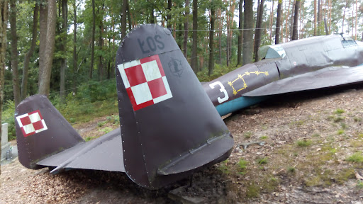Read moreNiektórzy mogą się oburzyć czemu daje 5 gwiazdek "stercie blach na kształt samolotu rozrzuconych w lesie"... A jednak dla mnie maksymalna ocena była moralym obowiązkiem i hołdem dla bohaterskich pilotów eskadry bombowej. W tym dokładnie miejscu w pierwszych dniach września 1939 roku rozbił się po walce powietrznej z niemieckimi myśliwcami samolot bombowy "Łoś 37B". Tego dnia w okolicy spadły łącznie trzy nasze samoloty tego typu. Miejsce pomnika wybrano celowo, a dzisiejsza makieta samolotu znajduje się dokładnie w miejscu gdzie na zawsze zastygł w bezruchu jeden z zestrzelonych samolotów.