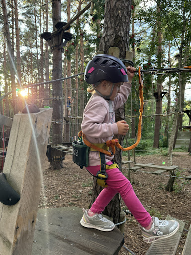 Kletterpark mit Sucht-Potenzial. Mit Stolz können wir sagen, dass wir bei unseren 3 Besuchen während unseres zweiwöchigen Aufenthaltes alle 4 Kletterrouten gemeistert haben. Die Tracks sind vielfältig, altersentsprechend, schon gut anstrengend und haben super viel Spaß gemacht. Das Personal kramt auch sein deutsch raus, ansonsten wäre Englisch absolut gut möglich. Perfekt für uns. Respekt auch für die Bewältigung von wirklich großen Gruppen an Schulklassen oder Ferienlagergruppen mit teilweise mehr als 50 Personen. Das Personal hat jedes Mal eine unfassbar große Ruhe ausgestrahlt. Hier hatte wirklich jeder immer gute Laune, einen Spaß auf den Lippen und ein gutes Auge für die Kletternden. Hilfestellungen und motivierendes Zurufen haben fast jeden über die Hindernisse gebracht. Hubert, Oliwier und netter Mann im bunten Shirt. Alle Daumen hoch. Das hat Spaß...