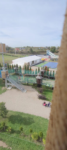 Large rope park, with 3 heights of courses. Even the lowest one is not short and not to easy. Very well maintained and clean. Staff speak English (which is not a given in North of Poland). We arrived around 15:30 and left at closing time (19:00). Admission was 60 zt. per child to use the whole park freely; accompanying adults - 5 zt. excluding the rope park. There is also a complementary coffee and tea self service table for the parents. There are more things to do here apart from the rope courses: bouncing slide, 4 lane slide, a part of scientific exhibits (quite a lot of which did not work or were hard to operate), a big tent with a lot of large lego-like bricks, swings, some (very) small scale fare rides. There are a lot of shaded picnic benches and tables for the guests' use The condiment stand closed somewhen around 16:00-16:30, which was a shame - no place to purchase drinks and snacks. I appreciate that it must have been due to the fact that the park was nearly empty of guests, but still. The on-premises food truck was closed as well. Nowhere to have a drink of water 🤷🏻♀️ Overall - I definitely recommend this, but make sure to bring...