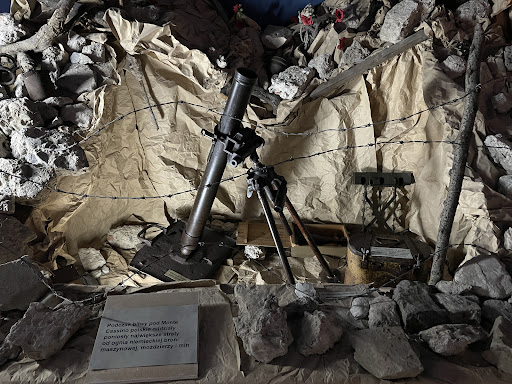 Muzeum budzi u mnie mieszane uczucia - z jednej strony uznania dla bardzo dobrze wykonanych dioram, a z drugiej żalu nad bardzo niewykorzystanym potencjałem. Mieści się w bardzo dużym pałacu, gdzie na pierwszym piętrze jest eksponowana historia pałacu i trochę mebli pałacowych, a na drugim jest wystawa militarna. Tych mebli jest zaledwie parę i mojej małżonce nimi zainteresowanej przejście całego piętra zajęło niestety mniej niż kwadrans. Na drugim piętrze jest wystawa o tematyce militarnej, więc małżonkę można zostawić na pierwszym piętrze i czym prędzej udać się na drugie. Jak wspomniałem, dioramy są świetnie wykonane, szkoda, że jest ich tak mało. Moździerz w wykutym w "skale" (z papieru) gnieździe wygląda bardzo realistycznie. Warto też zwrócić uwagę na stanowisko radzieckiej radiostacji. Poza nimi jest trochę broni palnej z I i II Wojny Światowej. Nie za wiele, ale np. dwie "duszki" na środku pomieszczenia można obejrzeć sobie z tak bliska jak się da, bo nie są niczym odgrodzone od zwiedzających. Jest wiele starych zdjęć ciekawie eksponowanych w postaci podświetlonych od tyłu przezroczy. W pomieszczeniach panuje półmrok, co dodaje klimatu, ale szczegóły eksponowanej broni są przez to słabo widoczne. My najpierw pomagaliśmy sobie latarką, a potem odkryliśmy jak włączyć światło (poza nami nikogo nie było).