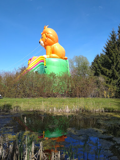 Przez wejściem spory parking, darmowy, na pewno znajdziecie miejsce. Obok jest KFC, Shell i restauracja. Płacicie w kasie za bilet i dostajecie opaskę na rękę z którą możecie wychodzić i wchodzić na teren parku wiele razy więc można wyjść coś zjeść. Po wejściu jest taka ala ścieżka. nie oczekujcie za wiele po tym miejscu. W pierwszej części sa atrakcje typu obłędny tunel (całkiem fajne), dmuchany lew (główną atrakcja), płukanie złotych kamyków, gry na automatach, trampoliny i park linowych (tutaj są dwie ścieżki, ta trudniejsza płatna 10zl/twarz).park linowy z tych dosyć łatwych więc dzieci bez problemu ogarną. I koniec. Druga część to ścieżki wzdłuż stawów. I tutaj już całkiem spoko. Ciekawie zaaranżowany teren. Duże owady, figurki potworów wodnych itp. Dodatkowo można w cenie biletu odbyć dosyć nudna wycieczkę łódka po stawach. Atrakcja jest ale bez fajerwerków, po prostu płynie się takim jakby tramwajem wodnym. Toaleta na środku w postaci kontenera. Nie była pierwszej świeżości,nie było mydła ani ręczników. Ogólnie wszystko fajne ale cena.... Za rodzinę 2+2 wychodzi grubo ponad 200zl. Teren jest zadbany ale niezbyt świeży. Widać upływ czasu. Z braku laku można pojechać. Ja byłem już drugi raz (pierwszy jakieś 7 lat temu) i już nie wrócę ale polecam każdemu zarezerwować cały dzień. Dzieciaki zachwycone trampolina mi i dmuchanym lwem. Można zjeść obiad, lody, wypić kawę więc dzień wolny jakoś zleci a jeśli nigdy tam nie byliście to dzieci na pewno będą zachwycone Nam zajęło to 3h ale śmiało można tam spędzić 5-6h (korzystając ze wszystkiego,z przerwą na obiad i pozwalając dzieciom się wybawić na dmuchanych...