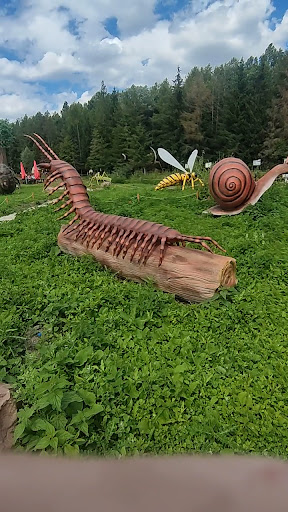 Przez wejściem spory parking, darmowy, na pewno znajdziecie miejsce. Obok jest KFC, Shell i restauracja. Płacicie w kasie za bilet i dostajecie opaskę na rękę z którą możecie wychodzić i wchodzić na teren parku wiele razy więc można wyjść coś zjeść. Po wejściu jest taka ala ścieżka. nie oczekujcie za wiele po tym miejscu. W pierwszej części sa atrakcje typu obłędny tunel (całkiem fajne), dmuchany lew (główną atrakcja), płukanie złotych kamyków, gry na automatach, trampoliny i park linowych (tutaj są dwie ścieżki, ta trudniejsza płatna 10zl/twarz).park linowy z tych dosyć łatwych więc dzieci bez problemu ogarną. I koniec. Druga część to ścieżki wzdłuż stawów. I tutaj już całkiem spoko. Ciekawie zaaranżowany teren. Duże owady, figurki potworów wodnych itp. Dodatkowo można w cenie biletu odbyć dosyć nudna wycieczkę łódka po stawach. Atrakcja jest ale bez fajerwerków, po prostu płynie się takim jakby tramwajem wodnym. Toaleta na środku w postaci kontenera. Nie była pierwszej świeżości,nie było mydła ani ręczników. Ogólnie wszystko fajne ale cena.... Za rodzinę 2+2 wychodzi grubo ponad 200zl. Teren jest zadbany ale niezbyt świeży. Widać upływ czasu. Z braku laku można pojechać. Ja byłem już drugi raz (pierwszy jakieś 7 lat temu) i już nie wrócę ale polecam każdemu zarezerwować cały dzień. Dzieciaki zachwycone trampolina mi i dmuchanym lwem. Można zjeść obiad, lody, wypić kawę więc dzień wolny jakoś zleci a jeśli nigdy tam nie byliście to dzieci na pewno będą zachwycone Nam zajęło to 3h ale śmiało można tam spędzić 5-6h (korzystając ze wszystkiego,z przerwą na obiad i pozwalając dzieciom się wybawić na dmuchanych...