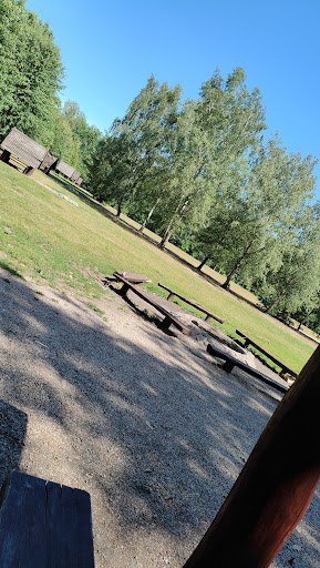 This picnic place looks inviting with a spacious grassy area and several wooden benches, perfect for outdoor gatherings. The tall trees provide ample shade, and the clear blue sky suggests pleasant weather, likely making it comfortable for a picnic. The gravel path adds a rustic charm and easy access. It appears to be a peaceful, natural setting, ideal for relaxation, though the benches seem a bit worn. Overall, it seems like a nice spot...