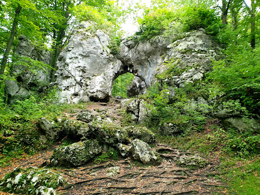 Read moreZłoty Potok obfituje w malownicze skały. Chyba nie ma w Polsce drugiej wsi, tak chojnie obdarzonej przez naturę. Pośród tego bogactwa, Brama Twardowskiego wyróżnia się regularnym kształtem, przypominającym bramę średniowiecznego grodu. Rozświetlony słońcem, jesienne zabarwiony las stanowi piękny anturaż wapiennych skał. Brama Twardowskiego zawdzięcza swoją nazwę legendzie, która zgrabnie spaja kilka lokalnych atrakcji. Niezliczoną ilość ścieżek i przyzwoita drogą z dobrym oznakowaniem pozwalają na swobodę w wyborze sposobu dotarcia do celu. Idąc że Złotego Potoku mija się najstarszą w Polsce pstrągarnię. Zbaczając kilkaset metrów w lewo można zobaczyć źródła "Zygmunt" i "Elżbieta" tworzące Wiercicę. Wybierając rower można tę trasę przebyć szybciej, nie tracą niczego z uroków okolicy. Jadąc samochodem można podjechać w pobliże skał ale jest tam niewiele miejsca. Lepiej zostawić pojazd na dużym placu przy głównej drodze i przejść 600 metrów leśną ścieżką, biegnącą wzdłuż ulicy...