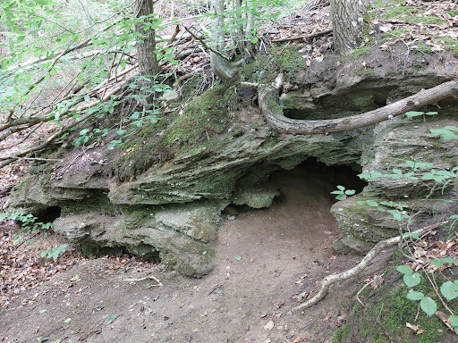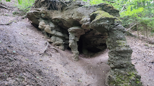 Read moreCiekawostka geologiczna i geomorfologiczna! Są to bowiem unikatowe na skalę kraju, groty sufozyjne, powstałe w wyniku wymywania przez wody opadowe skał nieodpornych na erozję, a następnie infiltrację jej (w tym przypadku) w stok moreny czołowej i dalsze drążenie korytarzy w zboczu. Miejsce godne odwiedzenia i osiągalne 20-minutowym spacerem czy wyczerpującym, bo pokrytym brukiem złożonym z ,,kocich łbów", zjazdem do rynny...