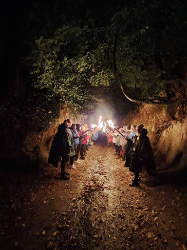 Trasa prowadziła m.in. przez wąwóz wzdłuż cmentarza – bardzo malowniczy i klimatyczny, szczególnie nocą. Mimo ograniczonej widoczności, to genialny, unikatowy pomysł, który na długo zapada w pamięć. Co ważne – pochodnie dostępne są dopiero od 13. roku życia.