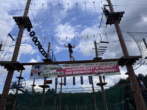 Read morePark linowy nie znajduje się niestety pomiędzy żadnymi drzewami, a są to poprostu wbite pale w ziemię z rozciągniętymi linkami. Drugim- i największym problemem- okazało się wpuszczanie na trasy (poza najwyższą) naprawdę małych dzieci, ok 5-letnich! Nie były w stanie same sięgnąć do sznurków, przeszkód, etc,, a co za tym idzie bardzo się bały i czas oczekiwania kolejnych uczestników koszmarnie się wydłużył! Skutkowało to tym, że tworzyły się korki, nie było gdzie stanąć na podeście, nie można było tych osób ominąć. Wiec prośba do zarządzających, że nawet jeśli dziecko "idzie" z rodzicem, ale nie ma wystarczającego wzrostu to nie należałoby wpuszczać na średni tor takich maluchów! Psuje to absolutnie zabawę innym, bo stanie i czekanie trwało dłużej niż przejście samego toru- a...