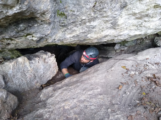 Read moreJaskinia raczej niedostępna dla zwykłych śmiertelników - wejście przez wąska, poziomą szczelinę lub przez kilkumetrowej głębokości komin. Plus za dwa miejsca...