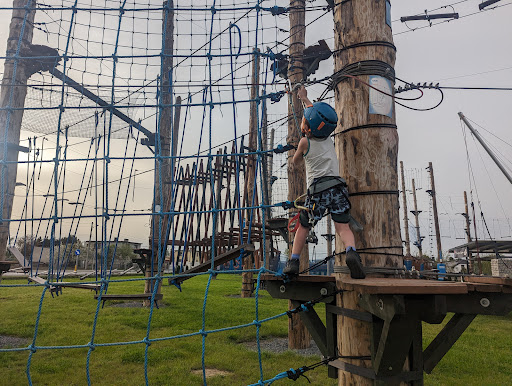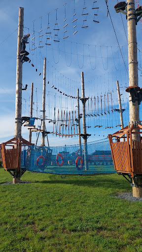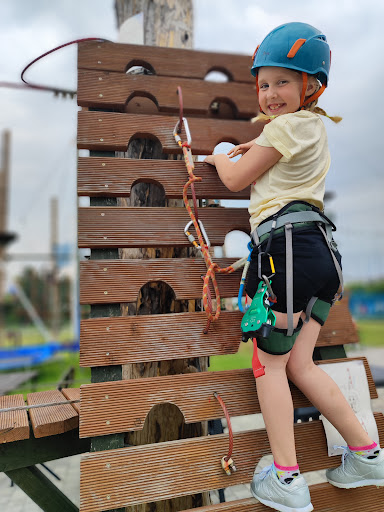 To wspaniałe miejsce na rodzinny, przyjacielski czy partnerski wypad we dwoje w sportowej wersji. Polecam pogodę nie zbyt słoneczna bo wtedy przebywanie na tych pałąkach nie będzie zbyt przyjemne. Jest wysoko a trasy są wymagające szczególnie ta najtrudniejsza ponoć przechodzi ja tylko 5% uczestników czyli co 20-sta osoba tak wspomniał Pan który pomaga w razie utknięcia. Dodatkowym utrudnieniem jest wiatr wtedy ciężej przejść przez przeszkody warto wybrać więc pogodę pod własne wymagania i stopień trudności. Na miejscu znajduje się toaleta bardzo czysta szacun za to dla gospodarzy bo w wielu miejscach niestety tak nie jest. Kiedy zgłodniejemy możemy pójść do restauracji gdzie mają pyszne jedzenie w dobrych cenach, miłą obsługę i ładny wystrój , można tam też zjeść lody czy napić się piwa dla tych nieprowadzących pojazdów 😁 Dodatkowo na terenie parku linowego są trampoliny oraz sprzedaż kolorowych Wat cukrowych w różnych smakach a nawet miksują dwa smaki na życzenie 😁 Osobiście dobrze się tam bawiliśmy a córka pokonywała swoje lęki wysokości polecamy na prawdę bo jest to fantastyczne miejsce by spędzić czas razem w miłej atmosferze ponieważ obsługa bardzo miła i...