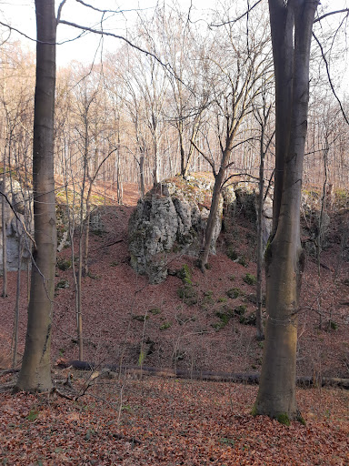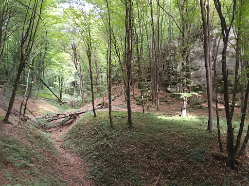 Ciekawy wąwóz, dużo bardziej dziki niż zdeptana (ale oczywiście ładna) Dolina Mnikowska. Dużo okazałych ale nieco zarośniętych formacji skalnych, dlatego jeśli chce się je obejrzeć dobrze wybrać okres od grudnia do kwietnia, oczywiście w słoneczne dni :)) Szlak niebieski, idąc od strony Mnikowskiej, w pewnym momencie skręca w górę w prawo. Warto jednak podejść jakieś 500m prosto, poza szlakiem, dnem wąwozu. Ukażą się dodatkowe skałki i zarazem resztki dawnego szlaku (czarnego?). Niestety daleko się nie dojdzie, bo wąwóz zamyka... autostrada A4, co zresztą słychać w pewnym momencie, nawet idąc jeszcze szlakiem. Słychać też startujące z lotniska Balice samoloty, przelatujące nad wąwozem, ale na szczęście tylko od czasu do czasu. Całość jest jednak warta zobaczenia, wychodnie skalne robią wrażanie 😇,