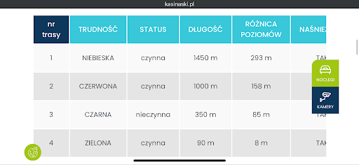 Jednak minus są przerażające: Nie wiem według jakich kryteriów jedyna niebieska trasa jest oznaczona jako niebieska. A właściwie wiem (średnie nachylenie), ale się z tym nie zgadzam. Nachylenie na 90% trasy jest takie same jak na bocznej czerwonej, ale jest kilka płaskich momentów. Stanowczo odradzam dla osób początkujących, dzisiaj widziałem wiele osób wywalających się co 3 metry i nie czerpiących żadnej przyjemności z jazdy. Domyślam się że taka naciągana klasyfikacja to efekt tego, że przez brak jakiekolwiek niebieskiej trasy pula klientów by się znacząco zmniejszyła, ale celowe wprowadzanie w błąd co do trudności tras stwarza ryzyko dla narciarzy. Stok jest średnio przygotowany technicznie (jeździłem od godziny otwarcia), ale też sam stok jest kiepski: nierówny, zmienne pochylenie itp. Jest bardzo niebezpieczny, szczególnie dla osób początkujących. W obliczu dwóch poprzednich ten punkt jest karygodny i chyba mój największy zarzut do właściciela (szczególnie że siatki jakieś drogie nie są): brak siatek poza miejscami naprawdę wymaganymi przez prawo (np elementy wyciągu, armatki itp). Przy takich warunkach i nachyleniu stoku, i takim wprowadzenie w błąd początkujących nie trzeba być geniuszem żeby domyślić się że ktoś może wypaść poza trasę (np osoba z którą jeździłem, a która się dopiero uczyła). Przy tym przepraszam za słowa ale zakrawa o kretynizm zostawienie tuż poza trasą ostrych gałęzi i wyciętych drzew. Było o krok o tragedii, samą sprawę zgłaszam do GOPRu Brak sensownych karnetów innych niż 4h i niemożliwość ich odsprzedania bo istnieje weryfikacja twarzy. Zwykła chciwość, bo jednak jak kupuje karnet to kupuje 4h zjazdu na karnet, a nie konkretną osobę. Jednak regulamin ośrodka blokuje karnet w przypadku odsprzedaży. Znowu, ma to sens biorąc pod uwagę warunki: kupuje się 4h bo krótszej opcji nie ma, po 1h ma się dość walki o życie, ale cały karnet przepada.