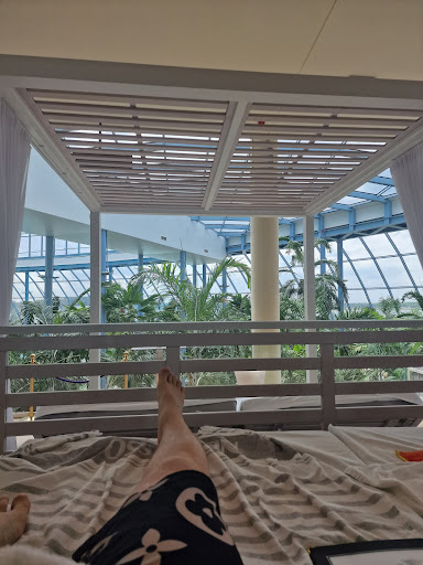Read moreWe had a good time here. The highlight for us was the adults-only zone. It was so nice to be able to relax in the water without the racket of kids. The cocktail list was extensive, and the pina colada that I had was really good. The only drawback was how hot it was inside; it felt like there was no air circulation at all. We had booked a cabana in the VIP zone but it was hot and muggy up there that we had to go hang out elsewhere. Not to mention that the soft drinks we ordered came at room temperature with a glass of ice - at the price you pay for a cabana, you should at least get a refrigerated water or Sprite. It’s not good enough to give people room temperature drinks with ice. It just won’t get cold enough this way. The customer service upon entry to the park was a bit annoying. The cashier failed to see we’d booked the VIP zone so we had to come back out to the atrium in our swimwear to exchange our bands. Quite annoying. The food was generally good quality. The burger restaurant in the adults-only zone was decent. The pizza place in the jamango zone was good food-wise but was absolute chaos - they lost our order and left us waiting for half an hour for a pizza that takes three minutes to cook. The cashier sorted it out for us in the end and we had our pizza within minutes. And I was surprised at the quality. The Asian restaurant however was the worst to be honest; it was very low quality food, stringy meat in tasteless sauces, spicy rice that had had every Asian spice thrown at it, sloppy vegetables in watered down sauce… it was just bad, not to mention expensive for the slop it is. Don’t go there, get a pizza instead or split a burger at the burger place. In the slide zone, it would be cool to see a picture of what the slide looks like. I don’t like too extreme slides so not being able to clearly see what the ride would involve made me nervous. The two I did go on were good though. The sauna area was nice with a lot of variation; the only thing that’s missing is a very cold plunge pool. The centre piece fountain is quite cold water, but after a sauna sesh, I prefer to just jump into cold water to refresh. The two pools by the entrance are good but the cold one isn’t cold enough to be refreshing after a sauna. If the sauna had a plunge pool, it would be top tier. The fish tank in the saunarium was quite a showstopper, loved that. Also shoutout to whoever was in charge of decorating Suntago because you can tell they really put a lot of effort into it. The amount of palm trees was crazy!