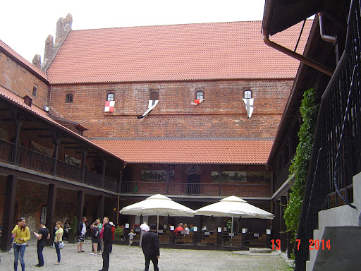 ZAMEK w Nidzicy, chociaż Pan sprzedający bilety 3 razy powiedział, że to DOM KULTURY =A NIE ŻADEN zamek, :(Nie wiem, co dla niego to oznacza ?:( Poza tym wpuszcza o pełnej godzinie, mimo, że oprócz nas nie było nikogo :) Ale za to zostaliśmy bardzo miło przyjęci przez Panią kelnerkę w RESTAURACJI ZAMKOWEJ , przemiła młoda osóbka. Na gorącą DUŻĄ kawę czekaliśmy 3 minuty .Warto było. Sam ZAMEK , to wielki dziedziniec z ławeczkami i stołami drewnianymi, kocimi łbami i schodami na górę. Wrażenie nie byli jakie, Pan o równej godzinie wskazał nam ręką, że mamy się skierować do sal po prawej stronie dziedzińca a potem po schodach na górę. Zwiedzaliśmy sami , było super. 4 MAŁE SALE, ale odzwierciedlające mieszkańców Nidzicy od zarania dziejów. SALA KATA I TORTUR fajna, nie przerażająca, dla każdego. Na górze można przejść wokół cały obiekt i podziwiać dziedziniec, ale tylko BASZTA JEST DO ZWIEDZANIA, RESZTA to biblioteka i sale na wynajem. Sama BASZTA, to .....sala, chyba po KAPLICY przerobiona na DOM KULTURY z podestem dla artystów. SALA kolejna, to schody wokół BASZTY z piękną salą w środku i małe schody na poddasze. I zejście w dół do ...restauracji i WC,.Zamek ma też piękny zagajnik wokół drzew i ławki na spacer. FAJNE...