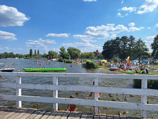 Read moreОдин из немногих "бесплатных" пляжей недалеко от Варшавы(за вход не берут). Вода неплохая. Никогда не видела что бы она здесь "цвела". В выходные есть спасатели. Много деревьев дающих тень. Есть места как на песке так и на траве. Небольшим пирсом пляж разделен на две зоны(с возможностью пожарить гриль и без). Есть несколько киосков с фастфудом, мороженным и напитками.(мороженное везде плюс минус вкусное. Еда ... "на любителя"). Если что рядом есть ресторан, а в километре Мак Дональдс. Есть душ(но работает не всегда), пара переодевалок(но туда бывает лучше не заходить), туалет(2зл.), парковка(от 10зл.), детская площадка и тренажёры. Территория убирается. Есть урны и лавочки. Можно "пообщаться" с уточками и лебедями(они здесь плавают в реке или вальяжно прогуливаются по пляжу). Кормить их нельзя(о чем свидетельствуют информационные таблички), тем более хлебом и булками(это вредно для птиц). Можно арендовать каяк или катамаран(от 30зл/час), покататься на водном скутере или "банане". Народу зачастую, - не протолкнутся. Контингент смешанный. Поляки. Много украинцев. Приезжают азиаты со своими огромными семьями. Парковка - это трагедия. В выходные наверное нужно приезжать с вечера что бы...