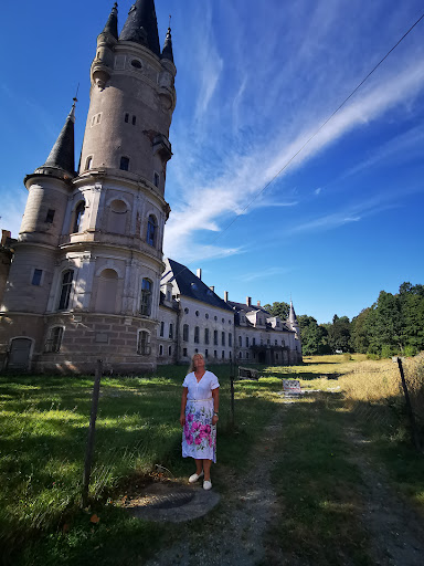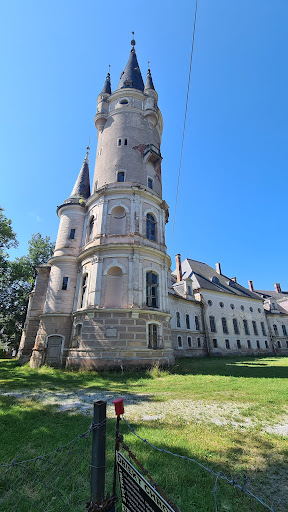 Read morePiękne miejsce z boku głównej trasy, którą większość turystów podąża w rejon Kotliny Kłodzkiej. Pałac nie jest dostępny oficjalnie. Chęć eksploracji skłoniła nas, do znalezienia dziury w płocie, którą przedostaliśmy się na teren pałacu-aby zrobić zdjęcia z bliższej odległości. Oczywiście zostaliśmy przyłapani przez pilnującego- ale był na tyle miły (mimo faktu, że nielegalnie wkroczyliśmy na teren posesji), że udostępnił nam obiekt do zwiedzania. Mieliśmy naprawdę wiele szczęścia! Obiekt w środku robi ogromne wrażenie, część pomieszczeń jest odnowiona lub w trakcie renowacji. Szczególnie utkwiły nam w pamięci olbrzymie drewniane szerokie schody, jak mówił Pan pilnujący "jak na Titanicu". Widok z wieży zapierał dech w piersiach, zwłaszcza, że z oddali nadciągała burza. Ogromna szkoda, że takie miejsce z tak ogromnym potencjałem niestety nie jest w pełni zadbane ani udostępnione szerszej publiczności. Myślę, że zwiedzający chętnie zapłaciliby "na legalu" te 25-30 PLN za możliwość obejrzenia tego bajowego miejsca. PS dziura w płocie na pewno jest już zabezpieczona, także nie próbujcie, ale negocjacje z pilnującym panem jak najbardziej...