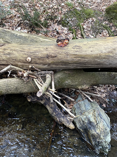 Myśliborski park. Zimą 2025. The entrance from the parking lot is littered with randomly growing trees and bushes. The paths in the park are of course dirt and inconvenient to use in the wet season. There are a lot of fallen trees that have not been removed, it is depressing. Many trees are without peel, it is obvious that in this part of the park the trees are affected by fungus. Birds were not heard. The good thing is the stream, well and the train, after 15-20 minutes of walking, nice landscapes and stone monoliths open...