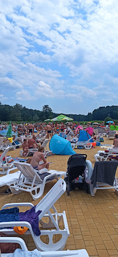 Read moreMiejsce spoko, jak na lata 90 - te. Ma spory potencjał, ale jest jednak nieco zaniedbane. Niewiele miejsca do rozłożenia się, praktycznie nie ma cienia, leżaki dodatkowo płatne chociaż cena za 4 osobową rodzinę wyższa niż w niejednym parku "z prawdziwego zdarzenia". Płaci się za dzieci od skończenia 12 m.ż. Teren wokół parku zadniedbany, błotnisty. Prysznice, toalety i przebieralnie raczej prowizoryczne. Dla dorosłych raczej bez szału, ale dzieci na instalacjach bawiły się całkiem dobrze. Strefa "dla maluszków" moim zdaniem nieco niebezpieczna, woda leje się na betonowe podłoże, które staje się śliskie, moja córka zaliczyła chyba z 10 upadków podczas 1 wizyty. Podczas wizyty w upalny dzień przy sporym obłożeniu nie było najmniejszych kolejek do toalet, a jest ich łącznie 6 - ocenę czystości wody pozostawiam do zastanowienia, ale to już nie jest wina organizatora. Prysznice są obok toalet, jakby z tyłu samego basenu, więc nie widziałam aby ktokolwiek kąpał się przed wejściem do wody. Dodatkowo nie są w żaden sposób osłonięte, wyglądają trochę jak na festiwalach - po prostu rurka z deszczownią na betonie. Parking jest dodatkowo płatny 10 zł, szkoda tylko, że jeśli przyjedzie się nieco później (byliśmy w niedzielę około 11:30), to można zaparkować około 900 metrów od samego aquaparku, a na taki spacer z toną rzeczy i dwójką małych dzieci nie byliśmy przygotowani. Plus za pana animatora, widać było mnóstwo zaangażowania z jego strony aby goście dobrze bawili...