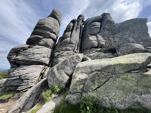 the way of nature to tell you "take a sit, drink something and continue your way", in hard winter you will not be able to see anything aside from the really big rocks, fog, snow and wind make it impossible to appreciate the view that lies behind, but let the spring come and its a really nice place to take a rest on yur way to Snezka hill (almsot the walf way), drink and eat something and look the nice landscape of Polish border at...