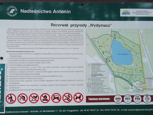 Tutaj Radziwiłłowie sobie pewnie polowali... Warto pospacerować przed dalszą podróżą.Dzikość tego miejsca jest zaletą ; oddaje pierwotny charakter ...Rezerwat utworzono w 1987 r. na powierzchni ok 50 ha. sam staw od którego pochodzi nazwa ma powierzchnię 10 ha.Rezerwat przyrody Wydymacz znajduje się na terenie Nadleśnictwa Antonin, 10 km na południe od Ostrowa Wielkopolskiego do którego można dojechać rowerem dzięki ścieżkom. Jest tam też inna ścieżka mianowicie przyrodniczo-dydaktyczna z 12 ciekawymi "przystankami" Gniazduje tam Orzeł Bielik i Bocian Czarny oprócz wiekowych dębów wiele egzotycznych roślin sprowadzonych przez księcia Antoniego Radziwiłła właściciela pobliskiego Pałacyku Myśliwskiego...Piękne...