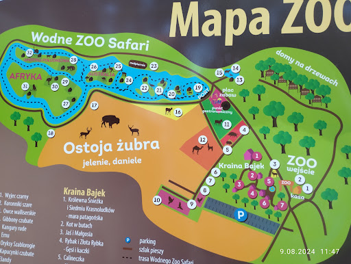 Read moreZoo choć nie nazwała bym tego miejsca tak. Zobaczyliśmy zaledwie parę zwierząt. Kraina bajek zaniedbana,motylarnia widzieliśmy może dwa większe okazy. Na wodne zoo Safari (które jest osobno płatne i nie ma możliwości skorzystania tylko z tej atrakcji) czekaliśmy około 3 godzin po czym okazało się ,że nie było warto. Zwierząt w ogóle nie było widać były tak wysokie trawy że ciężko było coś zobaczyć. Pani opowiadająca w łodzi była tak zestresowana że mówiła cicho i nie składnie ciężko przy warkocie było usłyszeć choć jedno słowo.Na wodnym safari oprócz lemurów i małp nie widzieliśmy nic. Co do ceny to juz przy zakupie biletów okazało się ,że nie jesteśmy rodziną dwa plus trzy ani dzieci nie obowiązuje bilet szkolny. Pierwszy raz sie z czymś takim spotkałam, że dzieckiem jest się tylko do 12 roku życia. Więc pozostałe dzieci zostały potraktowane jak osoby dorosłe przez panią w kasie. Miejsce bardzo przereklamowane na bilbordzie wygląda bajkowo a w rzeczywistości nie warte swojej ceny co przy naszej rodzinie pięcioosobowej już wychodzi parę stówek dokładnie 345 zł. Porównując z każdym innym prawdziwym zoo to tutaj wychodzi zdecydowanie drożej. Po za fokarium zdecydowanie nie warte odwiedzenia.Strefa gastronomiczna to budki kontenerowe z mało smacznym jedzeniem a toaleta wyglada tak choć nikt w niej nie sprzątał brak papieru, mydła,nie zamykające się drzwi. Całość terenu zoo do obejścia spokojnym krokiem maksymalnie w godzinę. Drugi raz nie wybrałabym się do...
