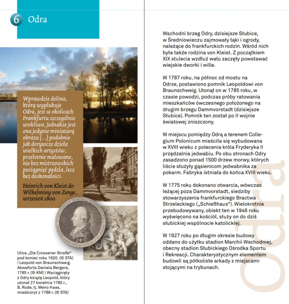 Read moreУ середні віки східний берег Одеру, нинішнє Слубіце, був зайнятий луками та садами, що належали родинам Франкфурта. Серед них також була родина фон Клейстів. На початку 19 століття вздовж набережної почали зводити заміські садиби та вілли.