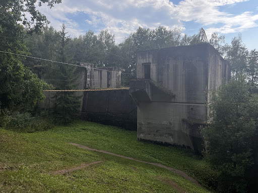 Read moreŚwietne miejsce dla fanów parków linowych, entuzjastów militariów. Czy na spacer jeśli jesteś na plaży w pobliżu. Ale błagam oznaczcie to lepiej. Bardzo ważna kwestia, o ile na samej mapie obiekt jest dobrze oznaczony, o tyle nawigacja prowadzi tam tragicznie i trzeba by to jakoś ogarnąć. Google maps prowadzi nas zupełnie z drugiej strony i to przez pole uprawne. Oraz niech was nie zwiedzie ta nieukończona śluza przy samej drodze, w głąb lasu jest główna atrakcja około 400/500m Co do samego parku, świetny pomysł aby wykorzystać do tego śluzę dla ubotów. Miejsce ma również potencjał na rozbudowę, ciekawe jakby wyglądała tam ścianka wspinaczkowa. Aż można by sobie pomarzyć jakby to było gdyby sama śluza była odrestaurowana. Mogłoby to wyglądać cudownie, no ale wiadomo, na to już by potrzeba...