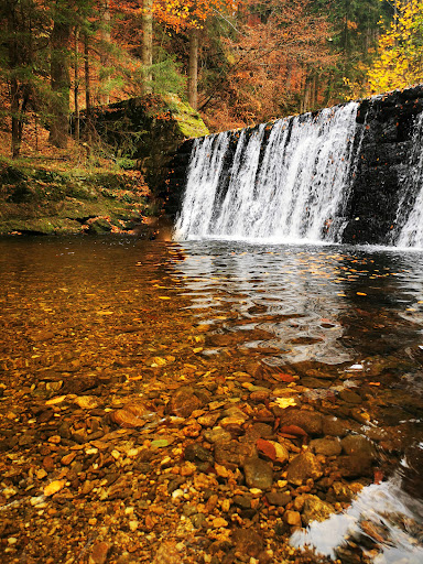 Read moreMiejsce malownicze, zachwycające, dojście przez lasek do wodospadu stosunkowo proste (w lecie). Przyrodę można ocenić wyłącznie pozytywnie, dlatego oceniam działalność ludzi - parkingu wlasciwie BRAK. Kierowcy rozjeżdżają kawałki trawnika lub po prostu łamią zakaz. Nie rozumiem, jak w miejscu o takich walorach turystycznych utrudnia się odwiedziny zmotoryzowanych... Takie trochę schizofreniczne - zrobić miejsce turystyczne z tablicą pamiątkową, mapą, ławką i stojakami na rowery, a jednocześnie uniemożliwić wielu...