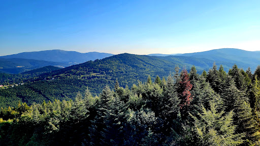 Read moreWieża widokowa umiejscowiona w Stryszawie na Surzynówce 840 m n.p.m., na terenie kompleksu hotelowego „Beskidzki Raj”. Można stąd obserwować liczne wzniesienia górskie: Beskid Żywiecki Gorce, Beskid Makowski, Beskid Śląski, Beskid Mały, jak również Wyżynę Olkuską. Jest to wieża o wysokości 25 m, lekko zwężającą się ku górze. Na poziomie ziemi obudowana ścianami, tworzącymi przestrzeń do organizacji różnego rodzaju imprez. Wejście jest odpłatne i odbywa się przez bramkę pobierającą pieniądze. Koszt 3 zł, płatne gotówką. Posiada 6 platform. Schody i balustrady wykończone zostały drewnem. Na ostatniej platformie umieszczono tablice prezentujące widoczne z wieży pasma górskie. Na wieżę można dojść szlakiem czarnym lub czerwonym z Suchej Beskidzkiej, lub czerwonym z Zawoji, można również dojechać z...