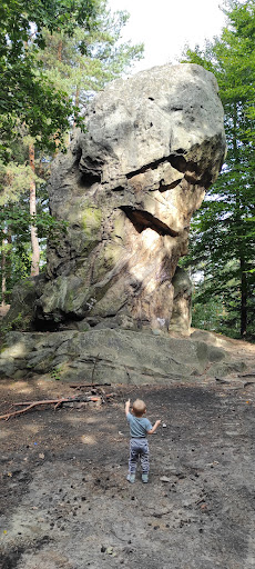 Diabelski Kamień to lokalna atrakcja. Dwa duże piaskowce, które przetrwały próbę lat i nie poddały się całkowicie zjawisku wietrzenia. Nasza wędrówka zaczęła się w Sułkowicach przy zalewie, podążaliśmy za żółtym szlakiem. Wycieczka trwała około 1,5 h. Szliśmy z 8 latkiem i 2 psami. Na miejscu byliśmy w niedzielę przed godziną 10. Było jeszcze pusto, ale po około 30 minutach zaczęli się schodzić ludzie. Także spokojny spacer polecam z samego rana. Podjęcie momentami ciężkie, wystające...