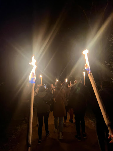Zaczęło się odrazu z przytupem. Wiedźma zafundowała nam seans z wróżbami. Wróżby z ziaren? TAK! Pani Kasia poczęstowała nas woreczkami i nagle okazało się, że mój los zależy od tego, ile ziaren miałem i jakiej wielkości. Nigdy jeszcze nie czułem się tak mistycznie i jednocześnie przekonany, że wróżby się spełnią. A później to już jazda bez trzymanki: pochodnie, las, grupa lekko podekscytowanych (i nie tylko😆) turystów i Pani Kasia, która od razu uruchomiła tryb: „Opowieści + żarty + tempo intercity ŻUBR”. Miał być lekki spacerek, a wyszedł pełnowymiarowy rytuał oczyszczenia w naturze – głównie śmiechem i legendami, które straszą tylko tych, co nie znają jej żartów.