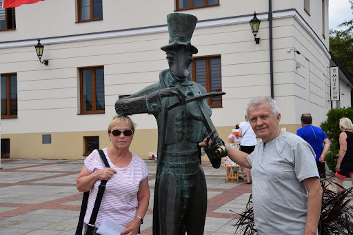 Pomniki Chrząszcza w Szczebrzeszynie najlepiej oglądać podczas festiwalu "Stolica Języka Polskiego", który w dn. 3-9.08.2025 zorganizowala już po raz jedenasty Fundacja Sztuki Kreatywna Przestrzeń. Ten festiwal to wyjątkowe zjawisko, którego pomysłodawcą i dyrektorem jest Piotr Duda. Co roku przyciąga do Szczebrzeszyna tysiące miłośników języka polskiego i setki najprzedniejszych twórców kultury. Z przebogatego programu festiwalu miałem okazję uczestniczenia we wręczeniu 8.08.2025 wybitnemu reżyserowi filmowemu i teatralnemu Krzysztofowi Zanussiemu nagrody "Człowiek Słowa" i posłuchania rozmowy Łukasza Maciejewskiego z dziewiątym już laureatem tej nagrody, będącej wyrazem uznania dla kunsztu słowa i wdzięczności za pielęgnowanie polszczyzny i kreatywne wykorzystywanie jej potencjału na co dzień. Jak zawsze przepięknie wypowiadający się Mistrz zdradził przy okazji swoją małą tajemnicę, że przed laty startował w konkursie na prezentera TV, ale na szczęście przegrał z legendarnym Janem Suzinem. Tego przedostatniego dnia festiwalu było jeszcze więcej nadzwyczajnych wydarzeń kulturalnych. Takim była niesamowita wręcz rozmowa o słowach, języku i kulturze przeprowadzona z wyczuciem i znajomością rzeczy przez prof. Grażynę Majkowską z Mistrzem Słowa prof. Jerzym Bralczykiem. To było niezwykłe, dynamiczne show, w którym ten absolutny mistrz świata i okolicy żonglował słowami jak piłeczkami, co wszyscy śledzili z zapartym tchem, deklamował z pamięci długie fragmenty znanych utworów z wielką ekspresją i kosmiczną prędkością, czym mógł załamać każdego słuchacza mającego problemy z własną pamięcią, a na koniec ad hoc wykoncypował prawdę językową, że słowa "mędrzec" i "głupiec" nie mają pary, bo nie ma odpowiedników rodzaju żeńskiego, co zdaje się sporo mówić... Tego wyjątkowego dnia na festiwalu było jeszcze wydarzenie artystyczne na scenie głównej w postaci ekspresyjnych, chwytających za serce deklamacji fragmentów wierszy różnych autorów o matce, wykonanych z najwyższą klasą przez Maję Komorowską i Arkadiusza Janiczka, zebranych w przepiękną całość przez Marię Topczewską. Przy fortepianie dopełniał udanie ten późnowieczorny spektakl Aleksander Żurowski, czemu do końca przysłuchiwała się wypełniona po brzegi sala przejętych słuchaczy. Gdy kwadrans po 21.00 już w ciemnościach wszyscy powoli wychodzili, to zapewne wielu z nas pomyślało o własnej matce i jak wiele jej...