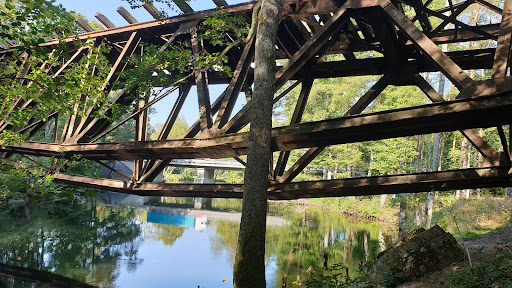 Read moreWielokrotnie przejeżdżałem obok tego mostu i mówiłem sobie kiedyś wrócę i zwiedzę. Muszę przyznać, że oznakowanie jest słabe ale po jednej stronie mostu znajduje się parking leśny, przechodząc na druga stronę ulicy mamy możliwość wejść na wał kolejowy i podejść w okolice wysadzonego mostu. Most wysadzili wycofujący się Niemcy w 1945. Natomiast torowisko zostało rozkradzione przez "braci" ze wschodu. Dostęp do mostu po stronie parkingu leśnego jest łatwy. Natomiast jeżeli ktoś lubi eksplorację może przejechać na druga stronę rzeki i tam zwiedzić most. Łatwe dojście jest wzdłuż nasypu poprzez drogę leśną. Natomiast ci co wolą się przedzierać przez zarośla mogą dojść nasypem kolejowym. Tam można zobaczyć dokładnie jak przyroda odbiera...