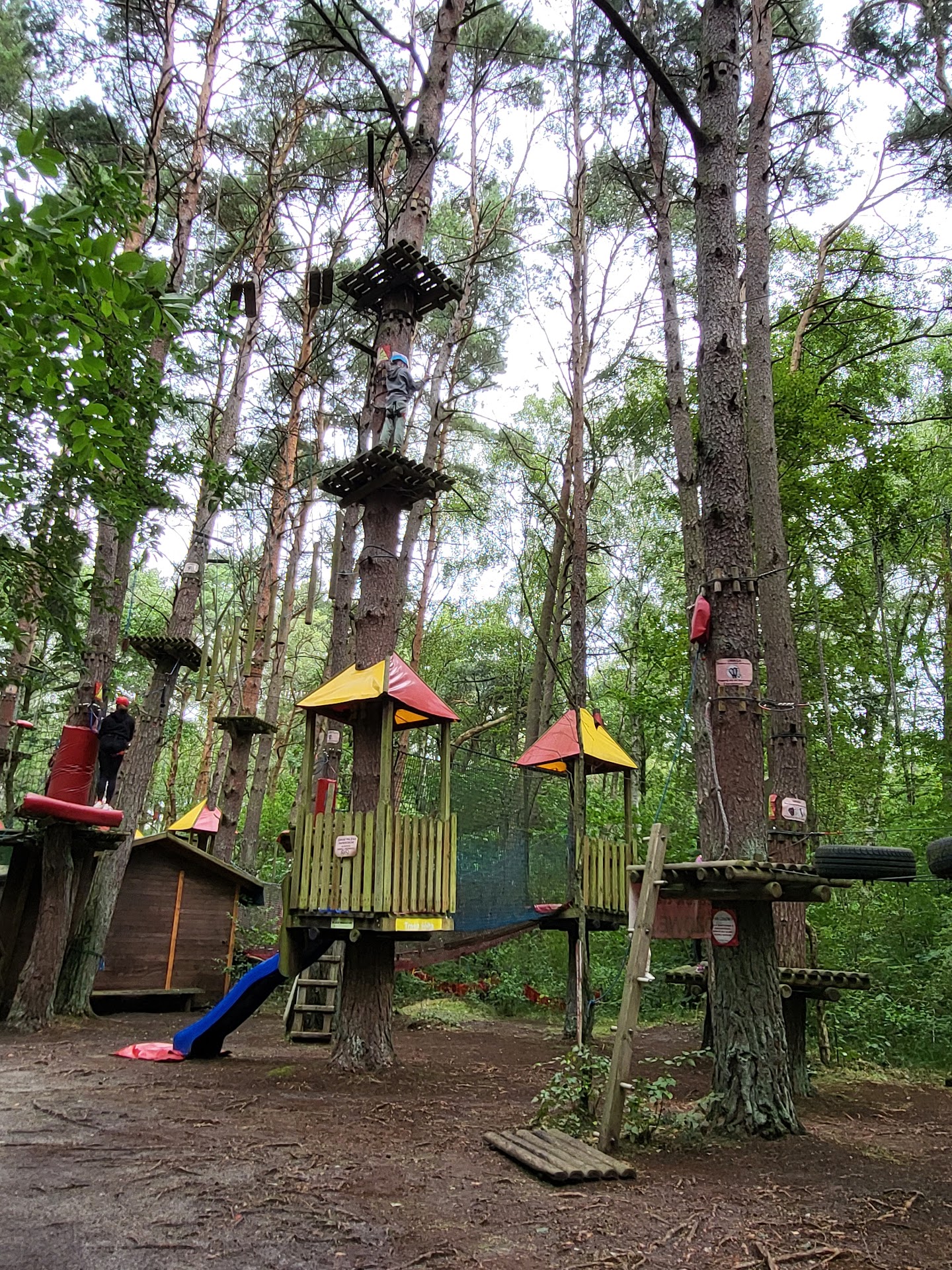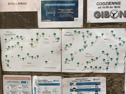 Read moreDer Kletterpark ist in einen Wald integriert und hat auch viel Holz verbaut. Es macht aber Alles einen stabilen Eindruck. Vor allem die Gurte und Helme sind neuwertig und leicht zu handhaben. Man braucht einen Moment, bis man das System der einzelnen Parcours verstanden hat...da sämtliche Beschilderung auf polnisch ist, die Betreiber ausschließlich polnisch und die jungen Männer als Assistenten nur schlecht englisch sprechen. Aber es wird der Umgang mit den Sicherungen bildlich erklärt und dann zur Probe kurz geübt. Es ist für Kinder ab ca. 6 Jahren und auch für Erwachsene geeignet. Für die ganz Kleinen ist auch ein sicherer Kletterparcour zum austesten da. Er gibt allerdings keine Getränke o.ä. zu kaufen und es steht auch nur eine Dixi-Toilette zur Verfügung. Hunde sind erlaubt. Für Rollstuhlfahrer ist das Gelände nicht so gut zu befahren. Man kann da sehr viel Spaß haben, sich ausprobieren und...