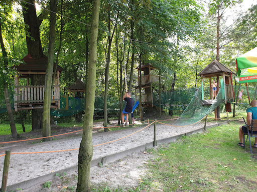 Miejsce jako plac zabaw dla dzieci ok, mini park linowy, 2 tyrolki, piaskownica, huśtawka. Niestety ceny kosmos🙈 obecnie cennik został zmieniony- niby płaci się mniej a w rezultacie więcej 🤷wcześniej godz zabawy kosztowała 20 zł, dorośli nie płacili za wstęp Obecnie godz. Zabawy 10 zł, 2h- 18 zł i ok, to można przełknąć. Ale teraz za wejście na " obiekt" płaci również dorosly- 10 zł!!!!! Masakra, rodzic płaci za to żeby usiąść na ławeczce ! Wokoło mnóstwo terenu zielonego więc rodzicom starszych dzieci proponuje skorzystać z ławeczek poza obiektem. Gorzej jeśli dzieci są malutkie i zwyczajnie trzeba wejść, pomoc... NIEPROFESJONALNE PODEJŚCIE DO TEMATU... takimi " promocjami" nie...