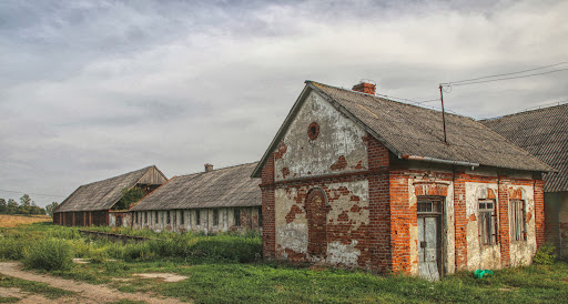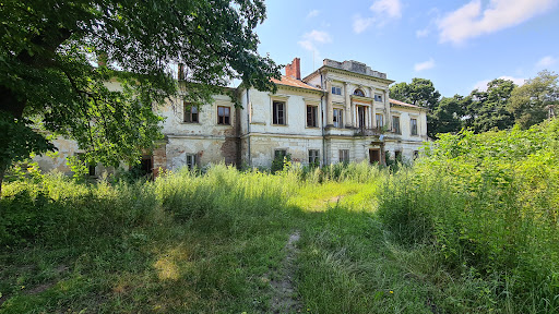 A palatial complex not far from Lublin Poland. The estate still has grand gates, a few interesting surrounding service buildings and the palace itself, in beautiful ruin overlooks a fishing pond. Some of the auxiliary buildings are inhabited so be careful when exploring...