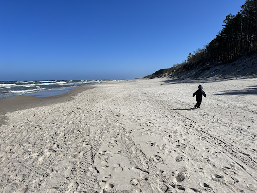 Read moreJest to całkiem ładna plaża, szeroka z czystym białym piaskiem. W zasadzie miejsca tu dużo i nawet w sezonie nie powinno być problemu ze znalezieniem wolnego miejsca. Parawany są tu raczej wskazane, bo zazwyczaj dość mocno wieje od morza. Mniejszy powiew odczujemy rozkładając się bezpośrednio pod wydmą, ale wtedy daleko jest do wody, bo plaża osiąga w niektórych miejscach ok 50 m szerokości. Plaża zachodnia bezpośrednio ciągnie się od lewego nabrzeża portu w Rowach, przez promenadę nadmorską i dalej szerokim pasem do Dębiny. Jest też część wschodnia, ciągnąca się od prawego nabrzeża portu, której zejścia są określane na tablicach jako Rowy wschód, jednak mapy Google nie chcą uwzględnić takiego nazewnictwa, co jest niezrozumiałe. A są tu co najmniej 3 zejścia. Dalej na wschód plaża ciągnie się do plaży naturystów i dalej przez Słowiński Park Narodowy. Ogólnie trzeba powiedzieć, że plaże tu całkiem przyjemne i urokliwe w większości otoczone wydmami. W Ustce plaża zapewne będzie szersza, ale czy bardziej urokliwa, to zostawiam ocenę przyjeżdżającym tu...