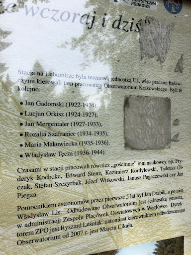Stacja na Lubomirze była terenową jednostką UJ. Kierownictwo pełnili kolejni astronomowie: Jan Gadomski (1922-1924), Lucjan Orkisz (1924-1927) i Jan Mergentaler (1927-1933).
