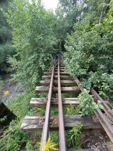 Super miejsce! Są dwie opcje żeby tam dotrzeć. Dla odważnych: od przejazdu kolejowego iść torami (prawa odnoga), potem przez rozklekotany most. Ja stchórzyłam bo trzeba skakać z podkładu na podkład a pod spodem płynie rwąca rzeka, jest dość wysoko a podkłady są bardzo śliskie. Wybrałam drugą opcję: od przejazdu kolejowego idziemy drogą w stronę zakładu poprawczego, przechodzimy na drugą stronę rzeki i zaraz za mostem, przed zakładem poprawczym, wchodzimy w krzaki na lewo. Idąc wzdłuż rzeki da się dotrzeć do wiszących torów. Dookoła samej atrakcji jest metalowa siatka ale ktoś uczynny zrobił w niej dziurę więc można...