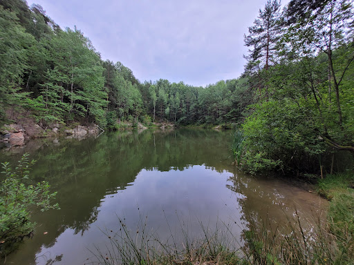 Read moreMoje ulubione miejsce na spacery. Obszar rzadko uczęszczany przez turystów, dziewiczy i piękny. Oczko wodne w zagłębieniu po kamieniołomie robi wrażenie zarówno z poziomu lustra wody jak i ze stromego, niemalże pionowego urwiska stanowiącego południowo-wschodni brzeg. Obszar pełen niezniszczonej przyrody, grzybów i rzadkich roślin. Nie wszyscy wiedzą, ale własnie tu pomiędzy 5 a 7 września 1939r. oddziały Grupy Operacyjnej „Kielce" pod dowództwem płk. Kazimierza Glabisza (w szczególności 93 i 154 Pułków Piechoty oraz 55 Pułku Artylerii Lekkiej) broniły pasma Łysogór i drogi na Warszawę przed nacierającym niemieckim oddziałom 2 Dywizji Lekkiej. W okolicy można więc spotkać liczne doły po pociskach i bombach, mnóstwo odłamków a nawet łuski, głównie z mauzerów...