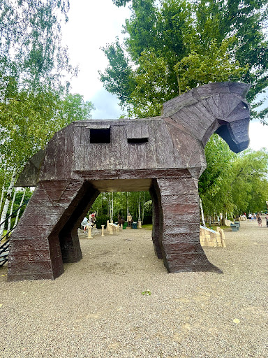 Read moreFajne miejsce na popołudniowy spacer, ale szału nie robi. Ciekawe o tyle, ze mozna poznać opowiesci i postacie z mitologii greckiej, ale jeszczce sporo do zrobienia. Jazda wózkiem po kamienno, ziemistej ścieżce jest trudna i nieprzyjemna. Zakurzone jest wszystki...buty, spodnie, wozek, koszmar! Zaniedbame, czyli zniszczone, polamane podesty do robienia zdjec. Idzie nogi połamać! Z plusów to, ze jest tam punkt gastronomiczny(ceny wysokie) mini plac zabaw dla maluchow, hustawki, jakis park linowy dla dla wiekszych dzieci. Kino letnie w piekne pazdziernikowe niedzielne popoludnie niestey juz byli zamkniete. Po jeziorze można przepłynąć sie stateczkiem i posluchac opowiesci o bohaterach...