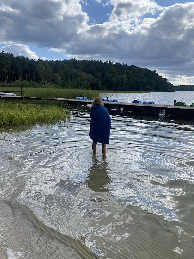 Read moreNajwiekszy plus za czysta wodę. Chyba w żadnym spotkanym dotad jeziorze nie bylo tak czysto. Stoi sie po szyję w wodzie i widzi swoje nogi. Jest tu kilka plaz aczkolwiek największą popularnością cieszy sie ta z mostem. Obok plaży jest wypożyczalnia rowerów wodnych i łódek. Można zapłacić karta za nie tyle, że w recepcji. Piękne widoki oeaz cisza i spokój. Przy plaży znajduje się dużo domków drewnianych. Można wyczuć tu niesanowity klimat. Do tego mamy restauracje, miejsce na ognisko, plac zabaw, namiot ze stolami do ping ponga oraz duża sala. Kuzynka miala wyprawiane tu wesele i w tej sali dzien po weselu mieliśmy przepyszne śniadanie. Z tego co sue orientuje koszt zadomek w sezonie to ok.390zl a poza sezonem 290. Warto tu przyjechać na kilka dni i...