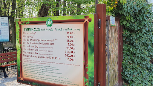 Park linowy dodatkowo płatny 15 PLN od dziecka - można z niego korzystac wielokrotnie chociaż ilość dzieci jest na tyle duża że lecą jedno za drugim jak pociąg. Cena wstępu za rodzinę 2+2 to 95 PLN (parking bezpłatny). Dodatkowo obiad i min 200 PLN na wyjście trzeba mieć. Między 200 a 300 sie zmieścisz.