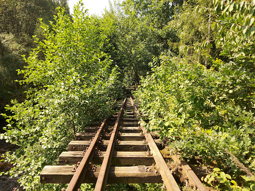Super miejsce! Są dwie opcje żeby tam dotrzeć. Dla odważnych: od przejazdu kolejowego iść torami (prawa odnoga), potem przez rozklekotany most. Ja stchórzyłam bo trzeba skakać z podkładu na podkład a pod spodem płynie rwąca rzeka, jest dość wysoko a podkłady są bardzo śliskie. Wybrałam drugą opcję: od przejazdu kolejowego idziemy drogą w stronę zakładu poprawczego, przechodzimy na drugą stronę rzeki i zaraz za mostem, przed zakładem poprawczym, wchodzimy w krzaki na lewo. Idąc wzdłuż rzeki da się dotrzeć do wiszących torów. Dookoła samej atrakcji jest metalowa siatka ale ktoś uczynny zrobił w niej dziurę więc można...