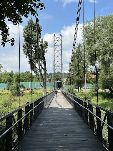 Read moreNawigacja niestety źle prowadzi do parku - kończy na prywatnej posesji. Można zaparkować od strony stadionu albo przy Lidlu, bo nad rzeką jest kładka. Nie ma pochylni dla wózków, ale są szyny na schodach, więc ostrożnie się jakoś da przedostać. Jest też kładka od strony galerii parkowej, tam już jest pochylnia. Ścieżki szerokie, asfaltowe, dobrze utrzymane, dużo ławek, dużo cienia, ale drzewa nie są przesadnie gęsto. Na koncu parku jest "łąka" otoczona ławkami, częściowo w cieniu, można z dziećmi zagrać np. w badmintona albo w piłkę. Wejście na górę parkową wyposazone w schody, ale koniecznie trzeba mieć wiązane buty z jakimkolwiek bieżnikiem, a nie klapki tudzież baleriny. Warto wyposażyć się w kąpielówki, bo rzeką jest dość czysta i przystępna, jest jak zejść i można się wykąpać. Niestety w tym sezonie zatrzęsienie komarów, więc nie można...