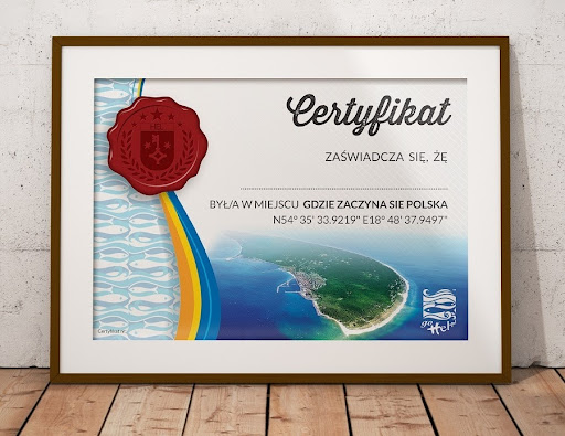 Na obrazie znajduje się certyfikat pobytu w Helu