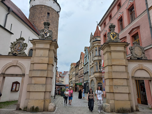 Read moreDer Schildauer Wehrturm und die anliegende Bastei bilden eine befestigte Anlage, welche gebaut wurde, um das Tor zu schützen, durch das der Weg nach Schildau führte. Im Kerker befand sich ein Gefängnis. Es ist bekannt, dass am 4. Dezember 1480 in Folge eines starken Sturms der Turm eingestürzt ist und 5 Menschen unter den Trümmern ums Leben gekommen sind. Der Turm wurde schnell wieder aufgebaut. Im Zuge dieses Wiederaufbaus hat er die heutige Gestallt erhalten, er wurde mit eine Turmhaube sowie eine Turmlaterne bedeckt und oben wurde eine Uhr angebracht. Das Schildauer Tor, das durch den Wehrturm geschützt war, befand sich am Ende der heutigen Konopnicka Straße. Einen zusätzlichen Schutz des Tores bot ein Stadtgraben, eine Zugbrücke, ein doppeltes Gitter und eine feste Tür. Bis 1775 stand hier ein prächtiges, mit einer Bastei verstärktes Tor, durch das die Einfahrt aus Richtung Schildau führte; daher auch der Name. Nach dem Abriss wurde es durch ein neues, viel bescheidenes Tor mit Pforte ersetzt, das die Stadtgrenze bezeichnete. Im Laufe der Zeit ging diese Funktion des Bauwerks verloren. Ende des 19. Jahrhunderts wurde es abgetragen und auf das Gelände der damaligen Walderseekaserne an der heutigen Obrońców-Pokoju-Str. verlegt. Das Tor blieb in einem guten Zustand erhalten und 1998, nach einer gründlichen Renovierung, kehrte es an seine einstige Stelle zurück. Die Verzierung des Tors bilden die Rokoko-kartuschen mit den Wappen Hirschbergs, Schlesiens und Preußens und eine...