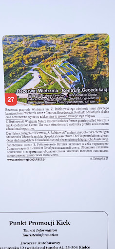 Read moreJeden z największych rezerwatów tzw. przyrody nieożywionej znajdujących się w rejonie Kielc. Utworzony w 1999 roku obejmuje powierzchnię około 18 hektarów. Ochroną częściową objęto pozostałości wzgórza Wietrznia (312 metrów n.p.m.) należącego wraz z Kadzielnią (295 metrów n.p.m.) do Pasma Kadzielniańskiego zbudowanego z wapieni górnodewońskich. Już pod koniec XIX wieku zaczęto wydobywać tutaj systemem stokowym i stokowo-wgłębnym wapienie i dolomity na produkcję wapna oraz jako kamień budowlany i tłuczeń drogowy. W 1974 roku zaprzestano eksploatacji surowca, a pozostałością po działalności górniczej są dziś trzy połączone ze sobą kilkupoziomowe wyrobiska o nazwach: Wietrznia, Miedzygórz i Międzygórz Wschodni. Wyrobiska te tworzą dziś zagłębienie o łącznej długości ok. 900 metrów. W południowo-wschodniej części rezerwatu zlokalizowane jest Centrum Geoedukacji. Rezerwat Wietrznia jest doskonałym miejscem spacerowym. Z tablic edukacyjnych można dowiedzieć się wielu informacji na temat przeszłości geologicznej terenu obecnych Kielc. Natomiast z punktów widokowych można obserwować doskonałe panoramy Gór Świętokrzyskich, a pomocne w identyfikacji poszczególnych szczytów są tablice ze...